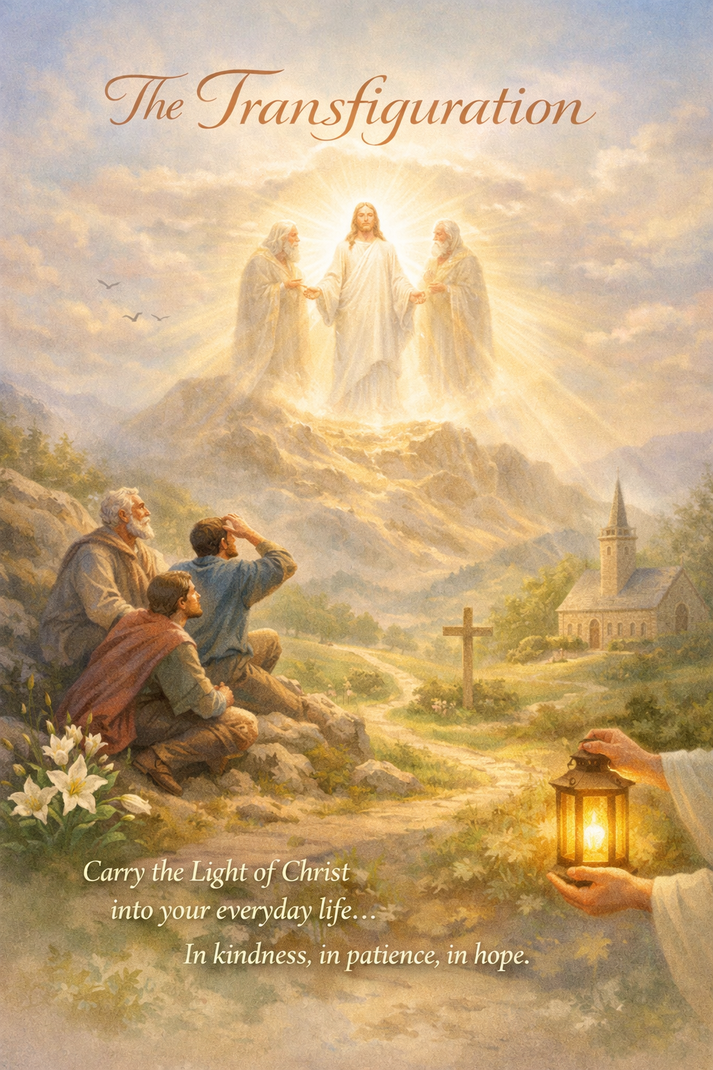 Peter, James, and John climb a mountain with Jesus. Nothing dramatic is expected. Yet suddenly, everything changes. Christ’s face shines like the sun. His clothes blaze with light. Heaven touches earth. And the disciples see, unmistakably, who Jesus truly is.
