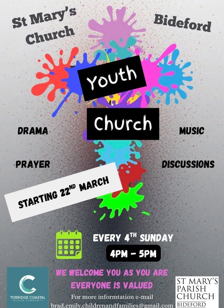 From 22nd March, Youth Church will be launching at St Mary’s Church, Bideford, creating a welcoming space where young people can explore faith, friendship, and creativity together.